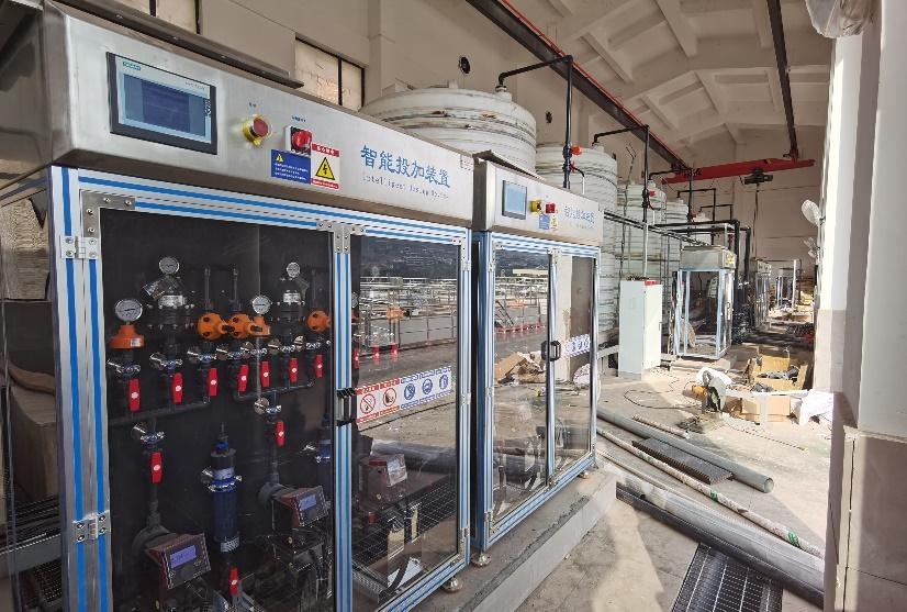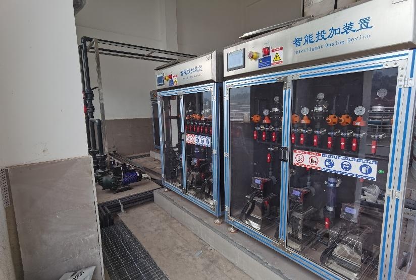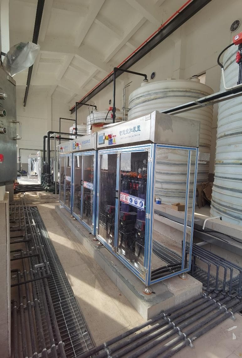 2023年建成的工业园区智能投加系统项目,处理规模0.5万吨/天,现场具备极高的安装交付效率。