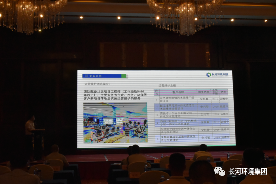 四川长河环境集团服务部总监刘国利向大家介绍了长河环境集团的服务部运营宗旨,并提出“服务3+3”的服务方案、数字水务云平台的解决方案,推出了长河环境智慧水务云平台等,获得了各级领导充分的肯定和赞扬。