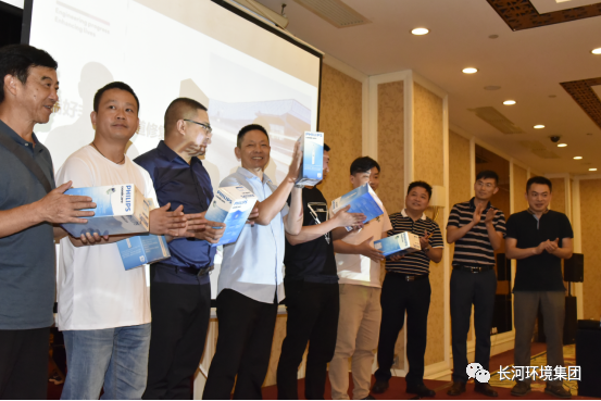 ▲长河环境集团吕万元总经理在向各个供排水企业优秀技术人员介绍公司产品